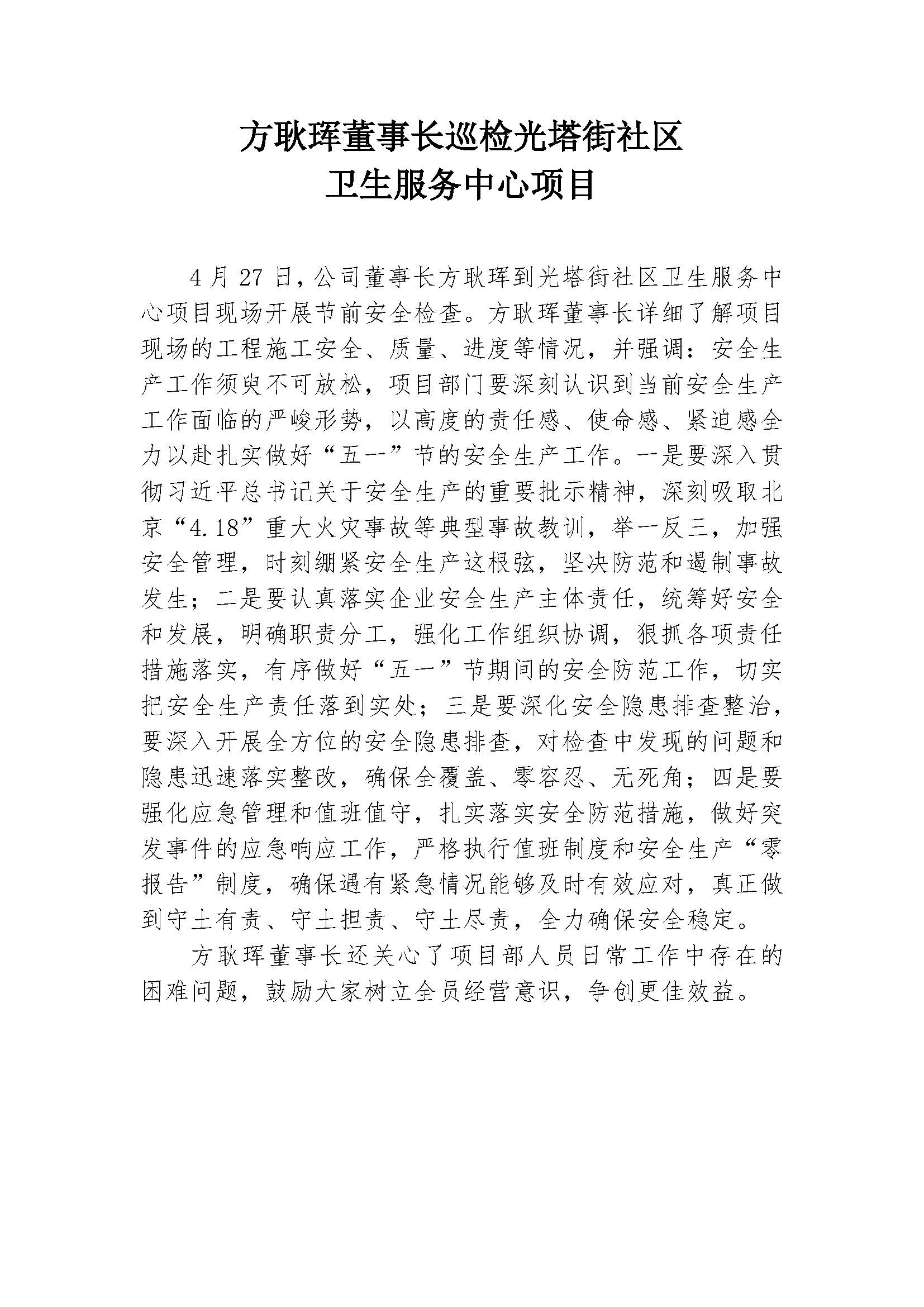 方耿珲董事长巡检光塔街社区卫生服务中心项目